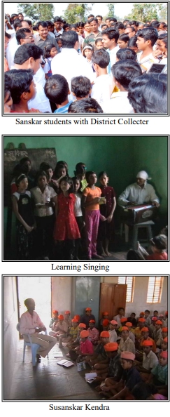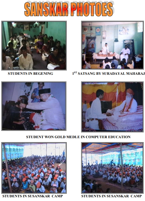 Due to the creation of above environment the qualities like service, charity, character development, awareness about carrier, spiritual thoughts were developing in children by which children were and are rescued from bad habits and also saved their money. By this saved money these children with the help of good villagers adopted other children for education, destitute old aged persons. To make these activities more transparent the “Sanskar Sanstha” has been established and registered as trust.